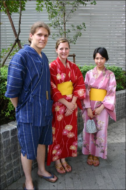 Tokyo - Hanabi (feux d'artifice) Copyright 2025 © Kezz Cette annee (2004), on a fait les choses serieusement. Comme tout japonais qui se respecte, quand on va a un matsuri et encore plus, voir des hanabi, le yukata (kimono leger pour l'ete) est l'habit le plus indique. |