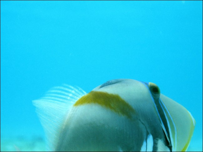Photos sous-marines Copyright 2025 © Kezz Ce poisson etait un des plus jolis au niveau des couleurs et il etait tres repandu, on en voyait un peu partout. J'ai aussi eu une experience amusante avec un poisson de cette espece: alors que tous les poissons etaient en general peureux et s'eloignaient de vous a votre approche (quoique j'etais surpris qu'ils restent quand meme tres a proximite... souvent a moins de 60cm de vous) ou que parfois certains manifestaient une curiosite a votre egare et venaient presque vous toucher, UN seul poisson s'est comporte de maniere differente en "m'attaquant" (pour autant qu'on puisse admettre qu'un petit poisson innoffensif de 10cm puisse "attaquer" un plongeur de pres de 1,87m !) Ca m'a bien fait rigoler en tout cas. Ce petit poisson donc ne devait pas aimer d'etre pris en photo car il a fonce et heurte a plusieurs reprises sur mon appareil. Ne voulant pas l'assomer a coup d'appareil photo j'ai fait demi-tour mais c'etait quand meme tres surprenant ;) |